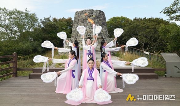 가덕도 연대봉에서 사전 녹화한 성화 채화 영상 송출과 함께 서정원 부산해양경찰서장이 무대에 올라 성화를 안치하는 감동의 순간이 연출됐다.