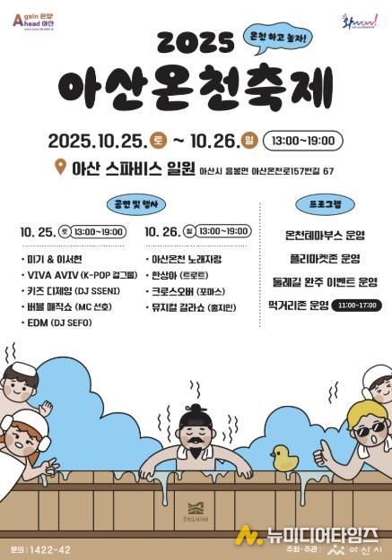 아산시가 주최하는 ‘2025 아산온천축제’가 오는 10월 25일부터, 26일까지 이틀간 아산스파비스 일원에서 열린다.