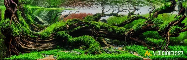 특히 지리산 자락 계곡의 흐름과 유려한 형상의 나무들에 영감을 받아 수조 안을 재현해 국내 출품작 중 가장 좋은 평가를 받았다.