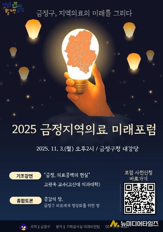 부산시 금정구는 오는 11월 3일 금정구청 1층 대강당에서 침례병원 파산 이후 지속되어 온 지역 의료공백 문제를 논의하고 의료체계 정상화 방안을 모색하기 위해 '금정 지역의료 미래 포럼'을 개최한다.
