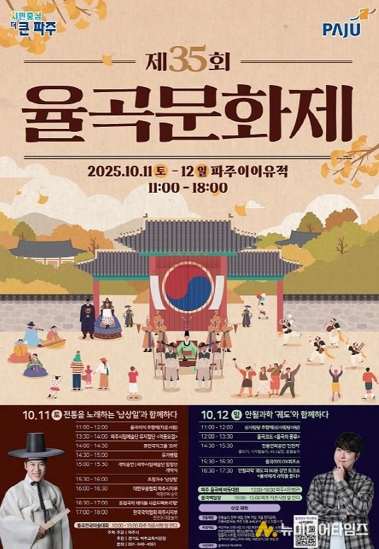 파주시는 오는 10월 11일부터 12일까지 이틀간, 파주이이유적에서 다양한 문화예술 프로그램을 통해 선생의 사상을 되새기는 ‘제35회 율곡문화제’를 개최한다고 밝혔다.