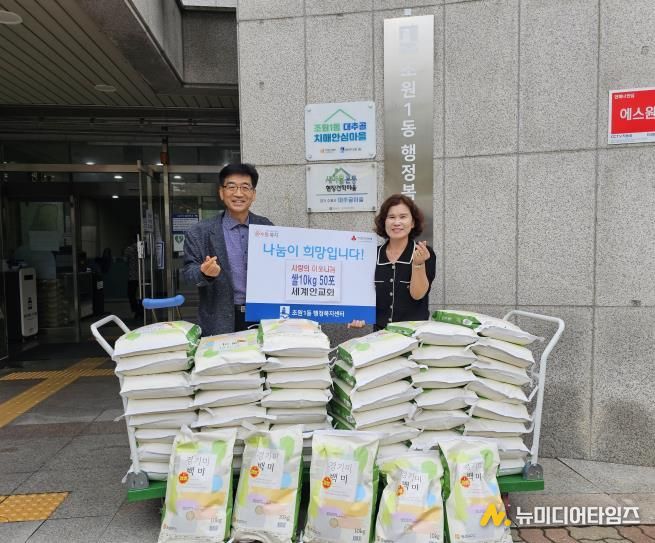 수원시 장안구 조원1동 대한예수교장로회 세계인교회는 지난 1일, 추석 명절을 맞이하여 조원1동 행정복지센터에 백미10kg 50포를 전달했다.