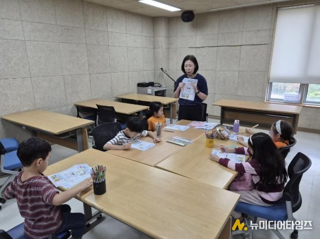 이날 수업은 학생들의 문해력 향상을 위해 마련되었으며, 초등학습지 전문 강사가 ‘무지개 물고기’책을 읽고 어휘놀이, 책놀이, 글짓기 등 다양한 독후활동을 진행했다.