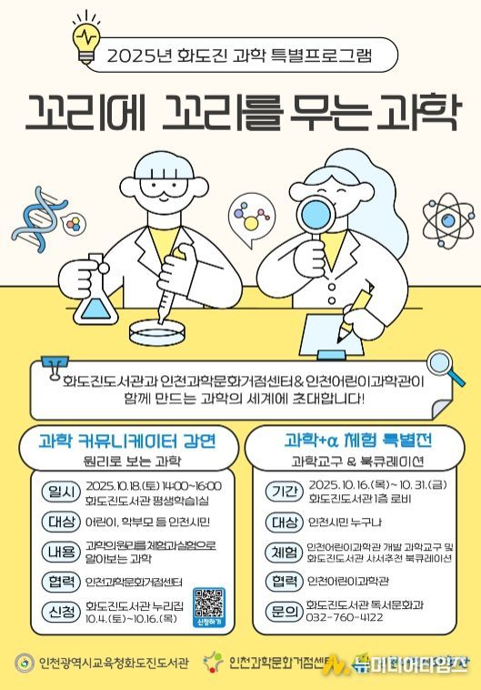 인천광역시교육청화도진도서관은 지역사회의 과학문화 확산을 도모하기 위하여 오는 10월 16일부터 31일까지 인천시민 대상‘꼬리에 꼬리를 무는 과학’을 운영한다.