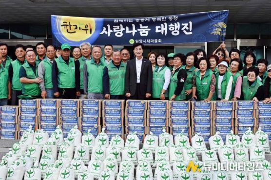 밀양시새마을회(회장 이선동)는 2일 시청 중앙현관 앞에서 읍·면·동 협의회장과 부녀회장, 새마을문고 회원 등 30여 명이 함께한 가운데 ‘한가위 사랑나눔 대행진’ 행사를 열었다.