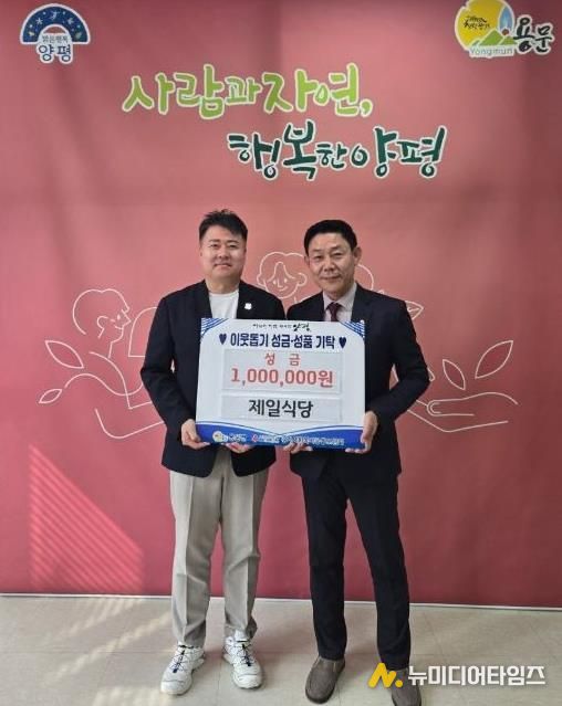 홍명기 용문면장은 “경기 침체와 어려운 여건 속에서도 용문면 주민들을 위한 따뜻한 나눔을 실천해 주신 제일식당에 깊이 감사드린다”며 “후원해 주신 기부금은 지역 내 복지 사각지대 해소에 소중히 활용하겠다”고 말했다.