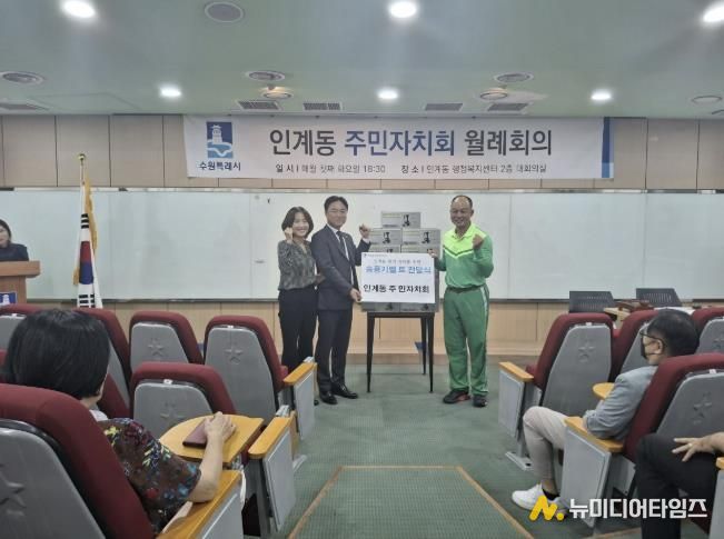 수원시 팔달구 인계동 주민자치회는 지난 10월 1일, 가을철 관내 낙엽청소용 송풍기 벨트(100만 원 상당)를 인계동 행정복지센터에 전달했다.