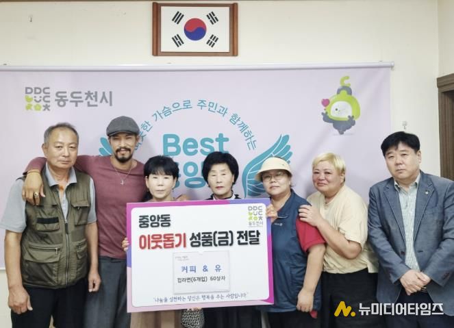 동두천시 중앙동 행정복지센터는 9월 30일, 동두천 커피앤유(대표 박애희)로부터 이웃돕기 성품인 컵라면(6개입) 60상자를 기탁받았다고 밝혔다.
