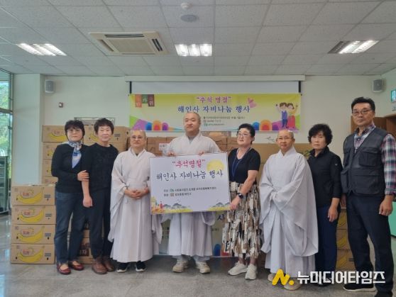 법보종찰 해인사와 조계종 사회복지재단 산하 코끼리행복복지센터는 10월 1일 봉산면, 묘산면, 가야면, 야로면의 노인맞춤돌봄서비스 대상자 어르신 800가구에 송편과 과일을 담은 선물 상자를 전달하는 ‘추석맞이 행복나눔 행사’를 진행했다.