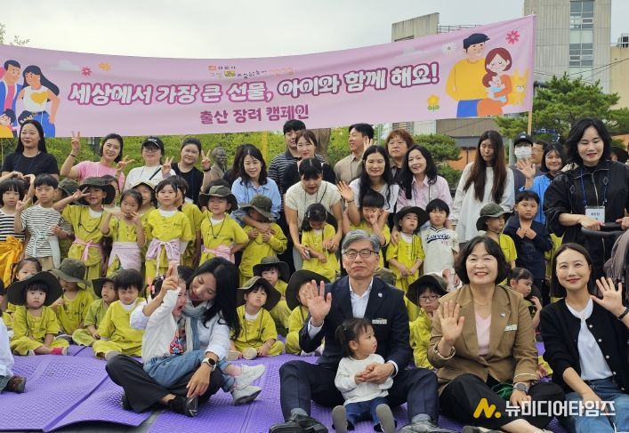 캠페인은 저출산 시대에 출산의 가치와 중요성을 알리고, 긍정적인 출산 문화를 확산하기 위해 마련됐다. 아이들은 아기 인형을 안고 직접 만든 전단지를 주민들에게 나눠주며 출산 장려 구호를 외쳤다.
