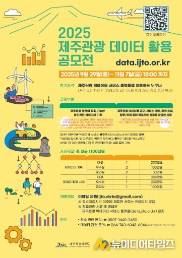 제주특별자치도와 제주관광공사는 오는 11월 7일까지 온라인 채널을 통해 ‘2025년 제주관광 데이터 활용 공모전’ 참가자를 모집하고 있다고 2일 밝혔다.
