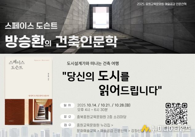 충청북도교육청 직속기관 중원교육문화원(원장 배상근)은 교육공동체 구성원들의 인문적 소양과 예술적 감수성을 높이기 위해 운영중인 문화교육 프로그램 '예술공감 인문산책'의 10월 강연 수강생을 선착순 모집한다고 전했다.