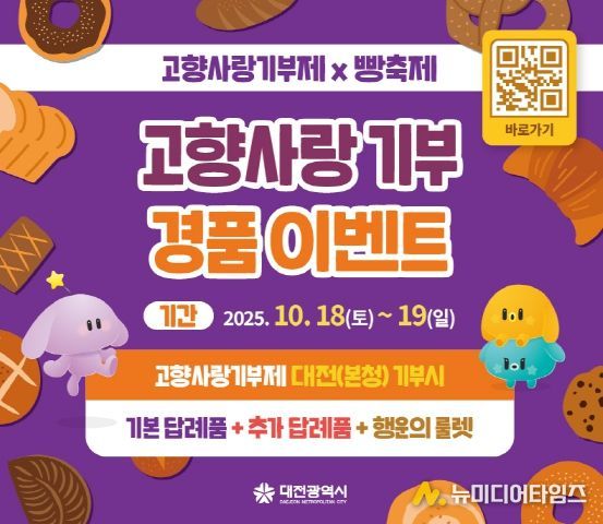 대전시는 오는 10월 18일부터 19일까지 소제동 카페거리와 대동천 일원에서 열리는 ‘2025 대전 빵축제’ 현장에 대전고향사랑기부제 홍보관을 운영한다고 6일 밝혔다.