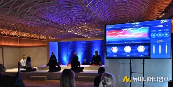 행사에서 참가자의 두뇌 활동, 집중도, 자기 인식, 내면의 고요가 정량화된 데이터로 화면에 시각적으로 표시되자 관객들은 처음으로 명상의 효과를 실시간으로 목격했다.