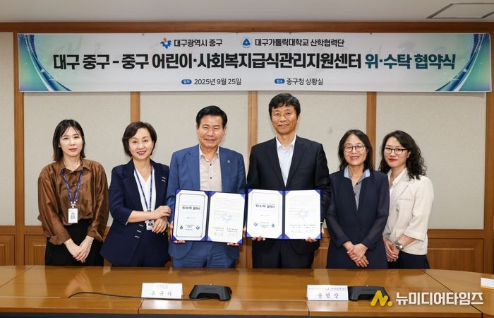 대구 중구는 지난달 25일 대구가톨릭대학교 산학협력단과 ‘중구 어린이·사회복지 급식관리지원센터 위탁 운영’ 협약을 체결했다.