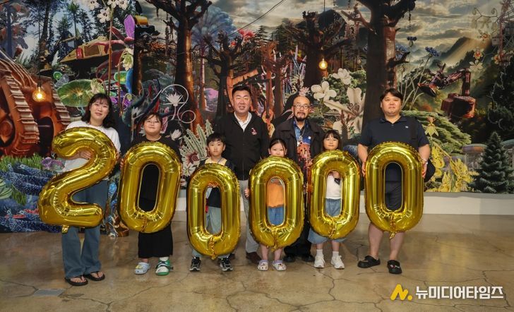 한가위 연휴 사흘째이자 개막 32일 차를 맞은 5일 낮 1시 40분경, 2025 청주공예비엔날레에 20만 번째 관람객이 탄생했다. 직전 2023 비엔날레보다 엿새 빠르게 20만 고지 달성의 기쁨을 안겨준 주인공은 윤선경(청주 흥덕구 대농로) 씨 가족. 추석 명절을 맞아 놀러 온 조카 둘까지 아이 넷을 데리고 전시장을 찾았다가 20만 번째의 주인공이 됐다.