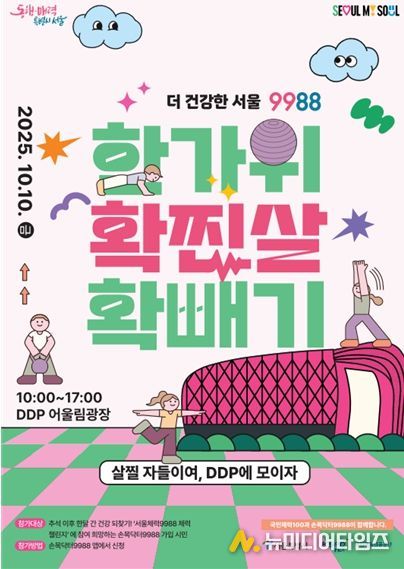 확찐자들의 확 빼는 첫날인 최초 체력 측정행사는 추석 연휴 직후인 10일 오전 10시 동대문디자인플라자(DDP) 어울림마당에서 진행된다. 오세훈 서울시장도 직접 체력측정에 참여하고 방송인 조나단‧패트리샤 남매도 시민들과 챌린지를 함께한다.