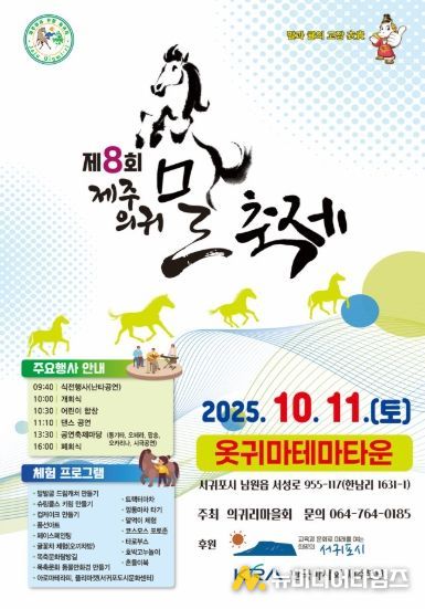 서귀포시는 ‘헌마공신 김만일’을 기리고, 제주 전통마와 지역 목축문화를 널리 알리기 위한 제8회 의귀말 축제가 오는 11일 옷귀마테마타운 일원에서 개최된다고 밝혔다.