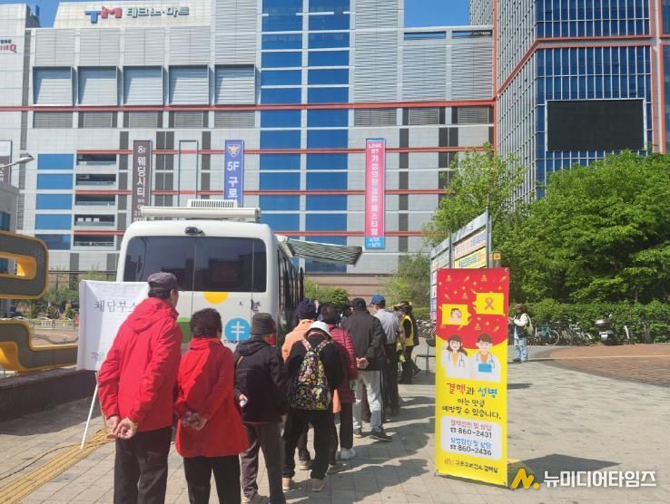 구로구가 10월 18일 오전 10시부터 오후 12시까지 신도림역 2번 출구에 위치한 무료 급식소 사랑의 집에서 이동검진 차량을 활용한 ‘찾아가는 결핵 검진’을 실시한다.