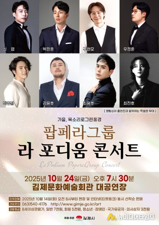 깊어 가는 가을, 특별한 음악의 향연 팝페라 그룹'라 포디움 콘서트'가 오는 24일 오후 7시 30분 김제문화예술회관 대공연장에서 펼쳐진다.