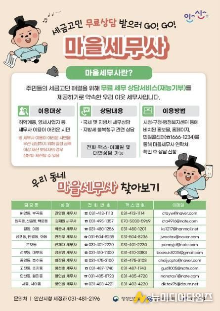 안산시는 올해 말까지 시민들에게 전문적인 세무 상담을 제공하기 위한 ‘제5기 마을세무사’ 제도를 운영한다고 10일 밝혔다.