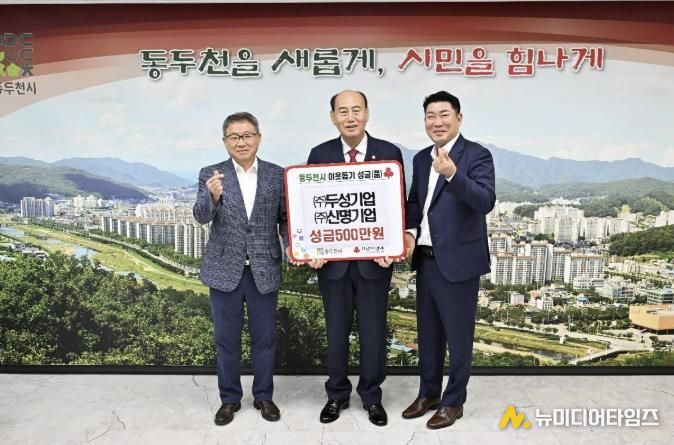 ㈜두성기업과 ㈜신명기업은 추석 명절을 맞아 지난 10월 1일 동두천시청을 방문, 저소득 가정을 지원하기 위해 각각 250만 원씩 총 500만 원을 기탁했다.