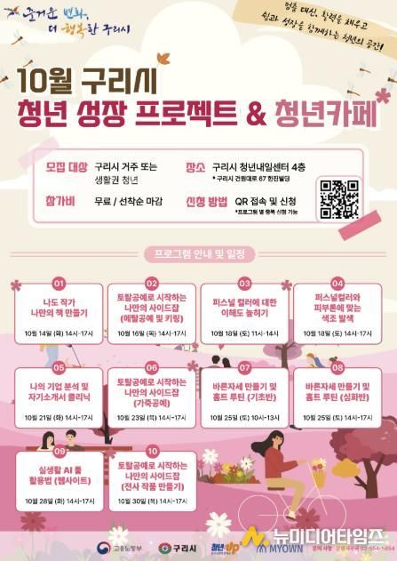 구리시는 고용노동부 공모사업에 선정돼 4월부터 추진 중인‘2025년 구리시 청년 성장프로젝트’의 10월 프로그램 참여자를 10월 30일 오후 1시까지 모집한다고 밝혔다.