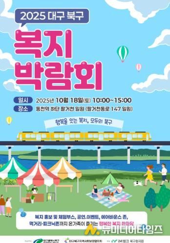 대구 북구청은 오는 10월 18일 오전 10시부터 오후 3시까지, 동천역 하단 팔거천 둔치에서 ‘행복을 잇는 복지, 모두의 북구’를 슬로건으로 '2025 북구 지역복지박람회'를 개최한다.