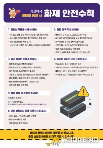 소방서 관계자는 “리튬이온배터리는 우리 생활 곳곳에 사용되고 있는 만큼, 올바른 충전과 보관 습관만으로도 대부분의 화재를 예방할 수 있다”며 “시민 모두가 안전수칙을 숙지해 화재 없는 안전한 생활환경을 만들어가길 바란다”고 말했다.