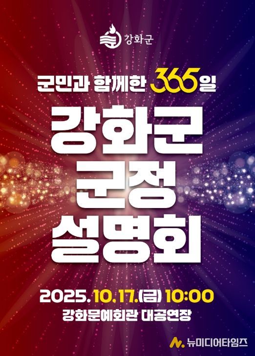 강화군은 오는 10월 17일 오전 10시 강화문예회관에서 “군민과 함께한 365일, 강화군 군정 설명회”를 개최한다.