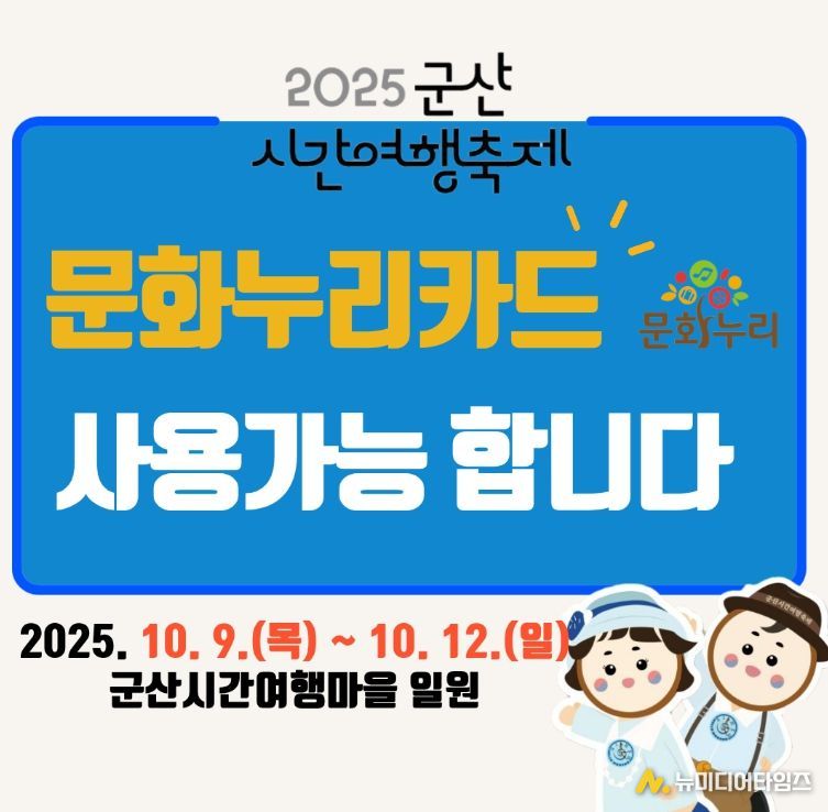 군산시가 12일까지 열리는 '2025 군산시간여행축제' 기간 동안 통합문화이용권(문화누리카드) 임시 가맹점을 운영해 시민들이 축제 현장에서 더욱 쉽고 편리하게 통합문화이용권(문화누리카드)를 사용할 수 있도록 지원했다.