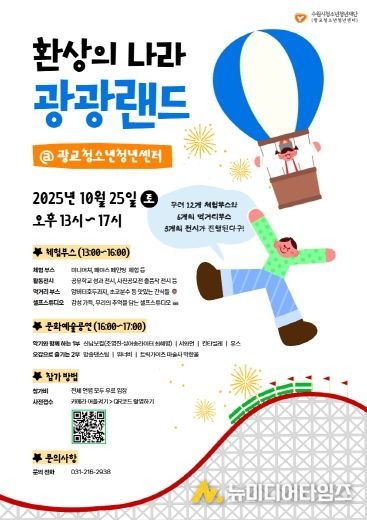 광교청소년청년센터 관계자는 “누구나 함께 어울려 만들고, 느끼고, 즐기는 ‘광광랜드’가 이웃과 공동체를 잇는 따뜻한 축제가 되길 바란다”며 “가족·친구와 함께 소중한 가을 추억을 쌓는 시간이 되길 기대한다”고 전했다.