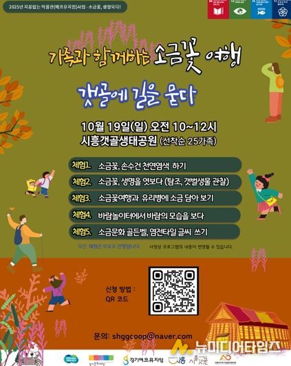 참가 신청은 홍보물에 안내된 정보무늬(큐알 코드)를 통해 온라인으로 하면 되고, 선착순 25가족을 모집한다. 모집 관련 궁금한 사항은 시흥갯골사회적협동조합로 문의하면 된다.