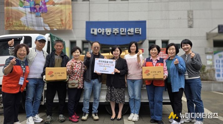 시흥시 대야동 통장협의회는 지난 10월 10일 대야동 주민센터에서 지역 취약계층을 위한 고구마 40상자(500kg) 전달식을 열었다. 이번 나눔은 지역 사회 돌봄의 공백을 줄이고, 따뜻한 명절 분위기를 어려운 이웃들과 나누기 위해 마련됐다.