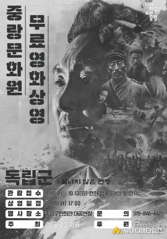 류경기 중랑구청장은 “광복 80주년을 맞아 열리는 이번 ‘독립군’ 상영 행사가 구민들에게 독립운동 정신을 되새기고 공동체의 의미를 다시금 깨닫게 하는 계기가 되기를 바란다”며, “앞으로도 구민과 함께 역사를 기억하고 계승할 수 있는 다양한 문화행사를 지속적으로 추진해 나가겠다”고 말했다.