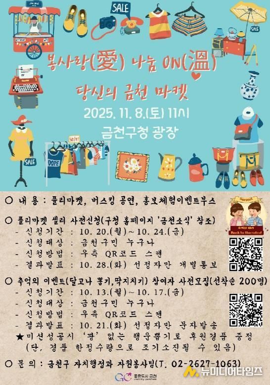 금천구는 오는 11월 8일 금천구청 광장 앞에서 ‘봉사랑(愛) 나눔ON(溫), 당신의 금천마켓’을 연다고 밝혔다.