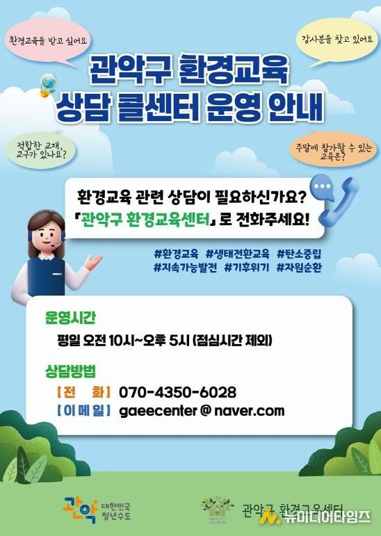 한편, 구는 주민과 기관‧기업의 환경교육 참여를 지원하기 위해 ‘관악구 환경교육 상담 콜센터’를 시범 운영하고 있다.