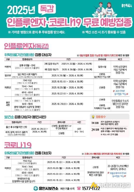 용인특례시는 10월 15일부터 내년 4월 30일까지 지역 내 290개 위탁의료기관에서 코로나19 무료 예방접종을 시작한다고 13일 밝혔다.
