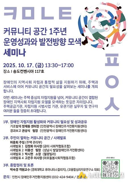 세미나 참여를 원하는 이들은 인천시장애인주거전환지원센터로 전화 문의하거나 포스터 내 큐알 코드를 이용해 신청하면 된다.