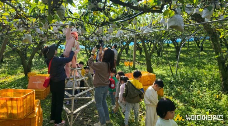가을철 배, 감 등 잘 익은 농산물을 직접 수확하는 체험도 가능하다.