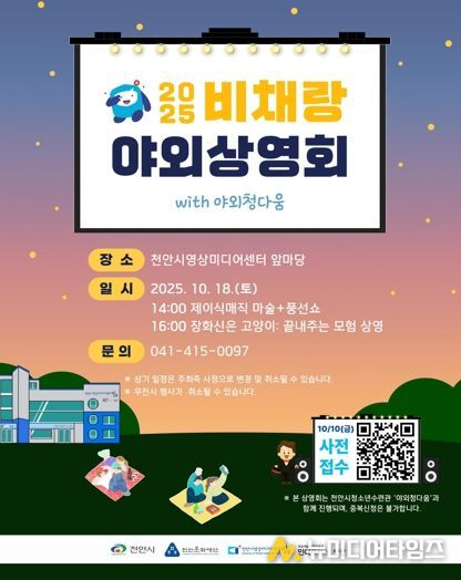 천안문화재단은 오는 18일 천안시영상미디어센터에서 ‘2025 비채랑 야외상영회’를 운영한다고 13일 밝혔다.