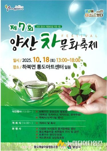 양산시는 오는 10월 18일 오후 1시 20분 하북면 통도아트센터 광장 일원에서 ‘제7회 양산 차문화축제’가 개최된다고 밝혔다.