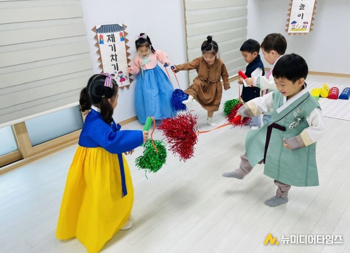 어린이집에서는 추석 명절을 맞이하여 한복을 차려입고 송편 만들기, 전 만들기, 차례 지내기, 전통 민속놀이 체험하기 등 다양한 프로그램을 진행하며 풍성한 음식을 나누고 가족과 함께하는 명절의 의미를 되새기는 시간을 가졌다.