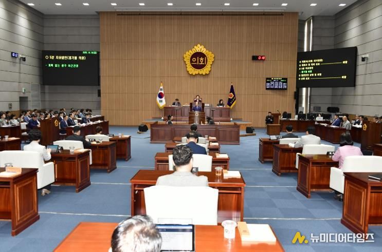 신수정 의장은 “14일부터 시작되는 제9대 의회 하반기 시정질문은 풀뿌리 민주주의의 본령으로, 시민의 눈으로 행정을 검증하고 정책의 방향을 함께 점검하는 지방자치의 핵심이다”라고 언급하며, “질문은 비판이 아니라 건설적인 제안임으로 집행부의 성실하고 책임 있는 답변이 더해질 때 비로소 민주주의의 실천으로서 시정질문이 완성됩니다”라고 밝혔다.