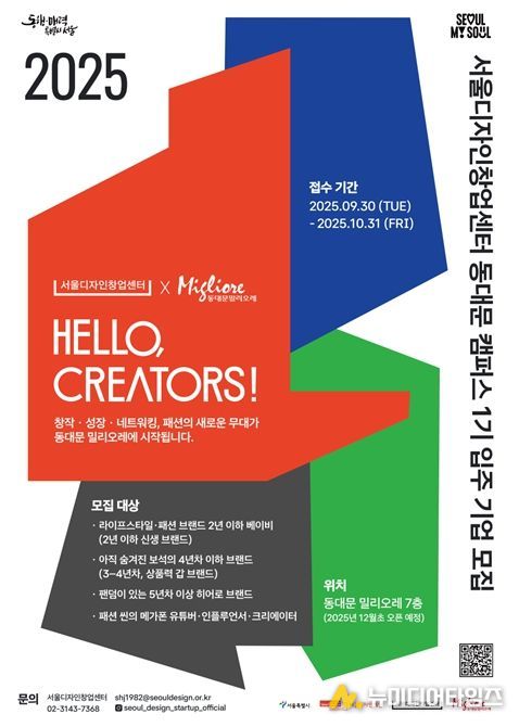 서울디자인재단은 동대문 밀리오레와 손잡고 2025년 12월 개소하는'서울디자인창업센터 동대문캠퍼스' 1기 입주 브랜드를 모집한다고 밝혔다.