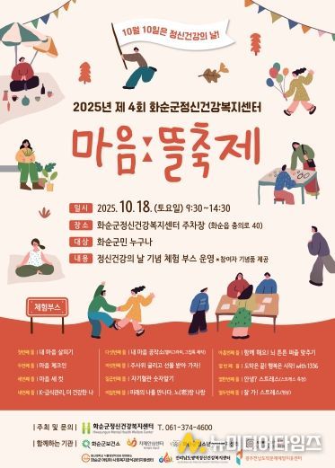 이번 축제는 화순군정신건강복지센터에서 10월 18일 오전 9시 30분부터 오후 2시 30분까지 열리며, 지역 주민 누구나 무료로 참여할 수 있다.
