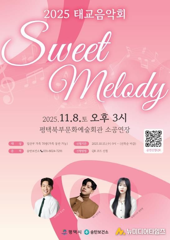 평택시 송탄보건소는 임산부 가족의 정서적 안정과 행복한 출산 환경조성을 위해 오는 11월 8일 ‘2025 태교 음악회『Sweet Melody』’를 개최한다.