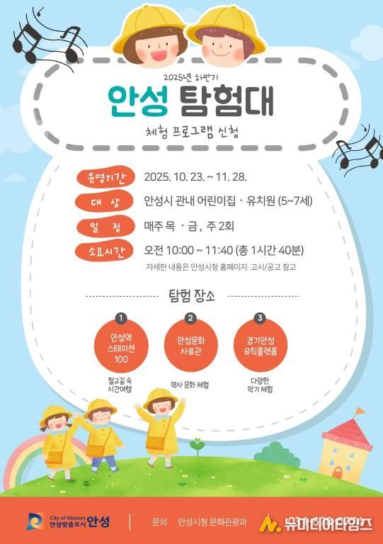 안성시는 상반기에 시범 운영해 큰 호응을 얻은 유아 대상 체험형 프로그램 ‘안성 탐험대: 역사 속으로, 음악 속으로!’를 하반기에도 운영하며, 지역 문화시설 활성화에 나선다.