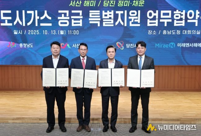 당진시는 13일 충남도청 대회의실에서 충청남도, 미래앤서해에너지와 함께 도시가스 공급 특별지원 업무협약(MOU)을 체결했다고 밝혔다.