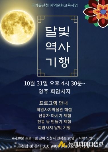 특히 오는 10월 31일 저녁, 회암사지 일원에서 시민 누구나 참여할 수 있는 야간 체험행사 ‘달빛역사기행’이 열린다.